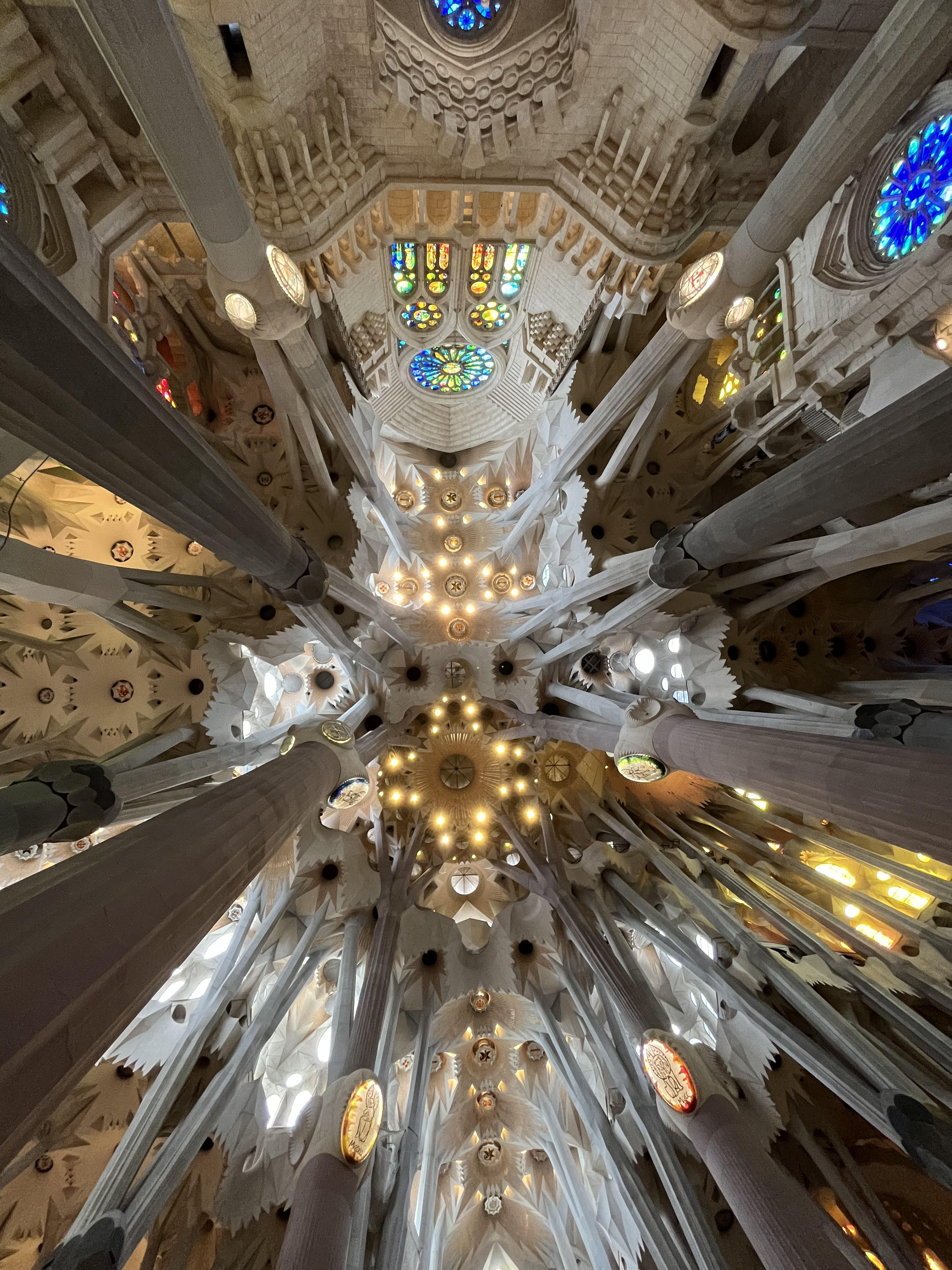 However, although it is much of an obvious choice, the basilica of La Sagrada Familia was hands down my favorite site in the city of Barcelona. It amazed me to know I still had the capability to be genuinely shocked after seeing many amazing historical landmarks in Madrid. When I first entered La Sagrada Familia it felt like I had emerged into a new world. During my visit to the Sagrada Familia, I learned that the genius responsible for blowing my mind was Catalan architect Antonio Gaudi. He was inspired by nature and God through much of his works and it was very telling through the basilica that many people travel far to visit. What really interested me the most about the structure of the inside were the pillars that stretched out at the very top. My first thought was that they looked like trees and I was happy to know that was the exact intention Gaudi had. The pillars were designed to look like trees whose branches were stretching towards the sunlight where the gorgeous multicolored glass windows surround the ceilings and walls. I spent much of my time there looking around trying to find out how Gaudiโs mind worked.