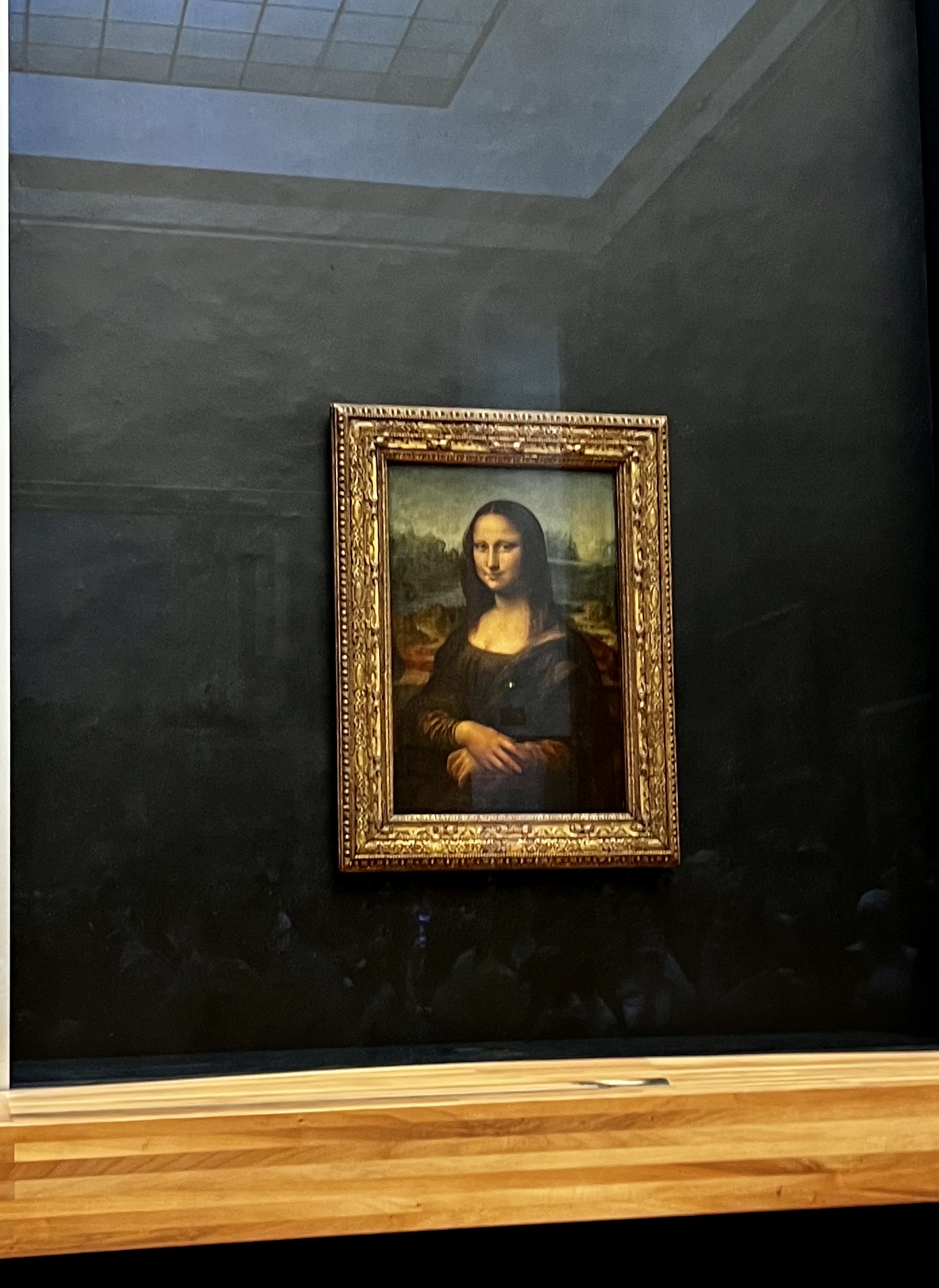 Visiting the Louvre was an incredible experience. I entered through the glass pyramid and headed toward the Mona Lisa. On the way to Mona, I saw many beautiful statues and sculptures. One of my favorite exhibits was the Statues of France, where many figures were placed in a large opening with a glass ceiling. When I arrived at the Mona Lisa, I was excited to see the masterpiece that had been through so much. It was the size of two sheets of paper, and she looked at you from all angles of the room. One of the most emblematic portraits, it certainly was worth the excitement.