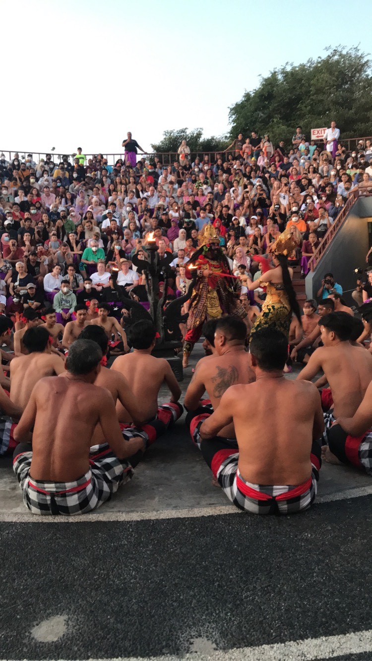 One of our last group activities was going to the Uluwatu Temple to watch a Kecak performance that showcases Ramayana which is a very famous epic. I really enjoyed the performance such as the sounds produced by the sitting mate performers, the dance routines, and the interactions between the audience and some of the main performers like Hanuman (the monkey).