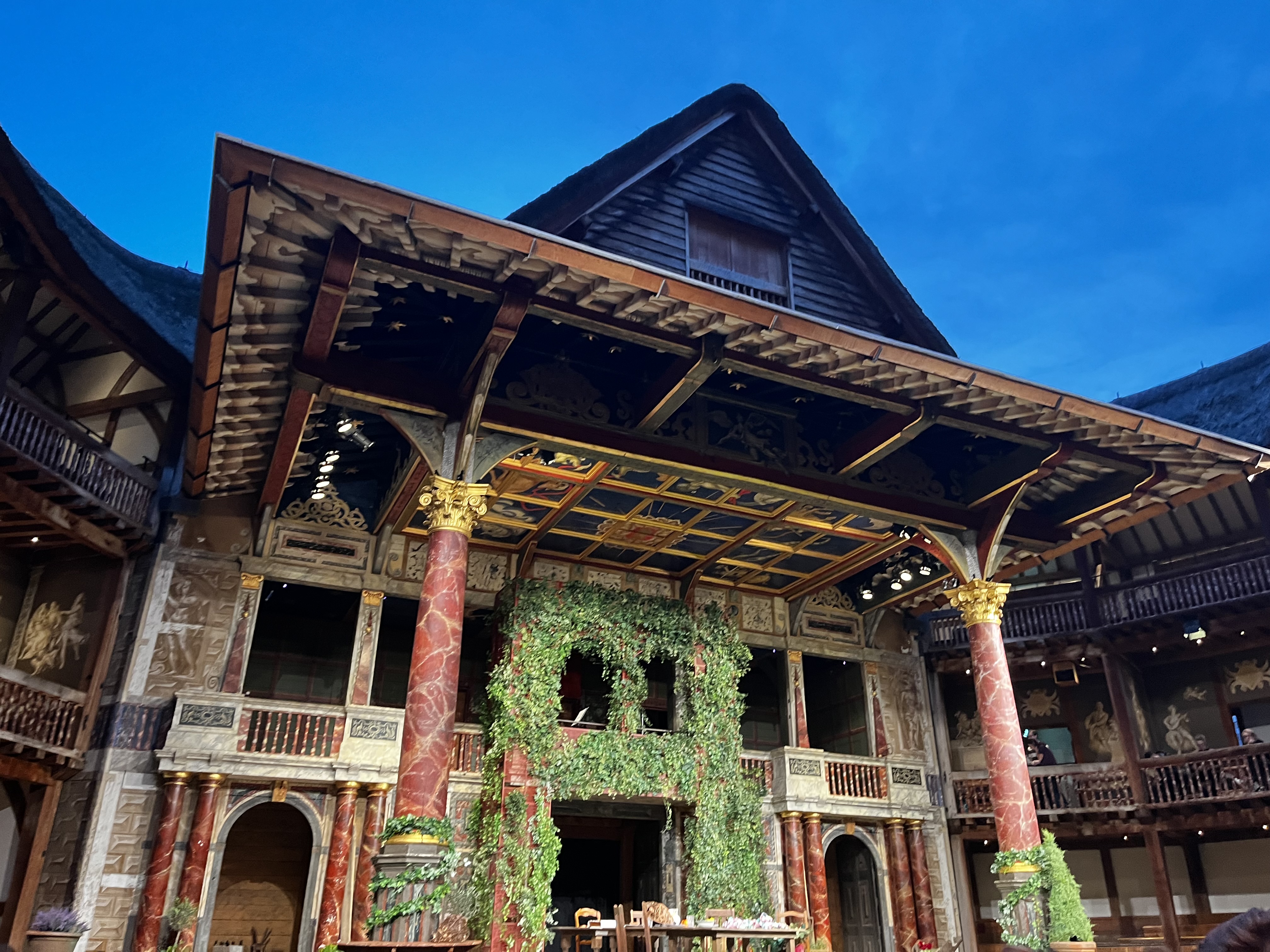 Yesterday, I had the privilege to attend Londonโs Globe Theater, modeled after the very place where William Shakespeareโs plays were performed back when they were first written. This is truly an experience you have to have for yourself, as there is no perfect way to describe it. We were โgroundlingsโ, patrons who would watch the show in a pit directly next to the stage, standing up. I was about a foot away from the actors on stage, able to see their every movement and the precise looks on their faces while delivering their lines. Although it is a hard task on oneโs legs and feet to stand for a three hour production, I believe it is truly the only way to experience such a play in full. The actors who played Benedick and Don Jon were both out sick, and stand-ins had to read off the script in their place. Even with actors holding a script around the stage, I was still able to completely suspend my disbelief as the story came alive. The ambience of the theater and incredible talent and skill of the actors made it impossible to grow bored with the production, especially with audience engagement such as a sprinkler going off onto the front row (yes, I got wet) in the middle of Act 3. Shakespeareโs legacy lives on in this incredible place with an open roof, able to see the nightโs sky and sunset as the night grew older. This experience was one of the ones I was most excited for when applying to study abroad, and I am grateful that it was an incredible show. I am tempted to go again and see another one of their productions, though it may be hard to convince one of my classmates to stand for that long with me again.