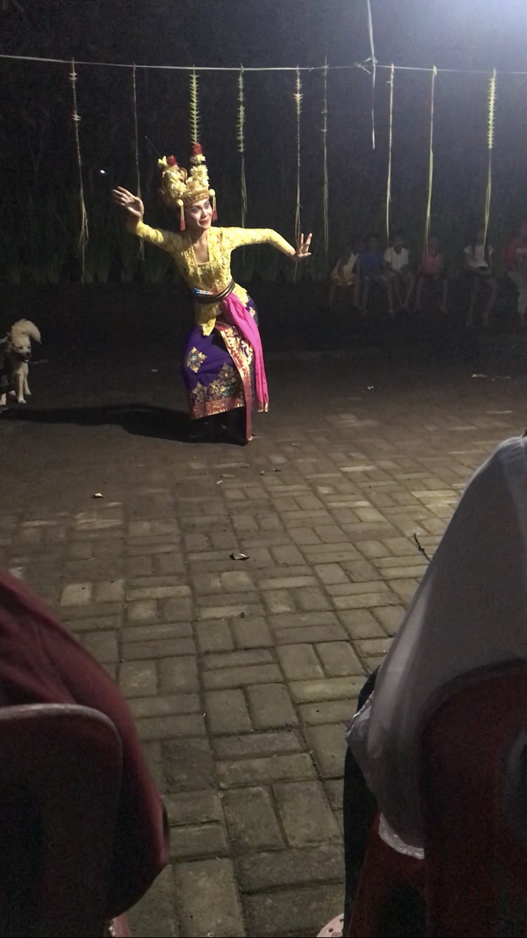 This week was the village homestay in Tabanan. We also started off with a 1 hour walk to the village. On our way there, we passed by cows, rice paddies, and rice terraces. It was very calm and peaceful with all the greenery around and it was nice to get away from the air pollution of the city. We also had over 20 local university students with us who was staying at the village too, but for other reasons. We had a chance to mingle with some of them. They participated with us in almost every group activity aside from making the coconut bowl and sambal matah. When we sat down to choose our homestay families, I noticed that most of the mothers were looking at me and smiling and saying something to each other. I didnโt know what it meant so I just sat there awkwardly and smiled and tried to not pay attention to it. I inquired later what that was about and apparently they were talking about how I look Indonesian! Anyways I was placed with Mโbah Naomi who was very sweet, but of course, there was a language barrier. I ended up using Google Translate to communicate with her, but obviously, I didnโt know what she was saying back to me. She kept saying I was cantik which meant pretty, and I think she asked me to show pictures or asked about my parents, so I started showing her pictures of my family. I actually liked my homestay family and where I was at because I was only a few minutes walk away from the center where we will be having most of our activities. However, one of their dogs kept growling and barking at me. Since I have a small fear of dogs, I tried to avoid using the restroom at night if I could. During the homestay, we participated in collecting medicinal herbs, ingredients, and plants for making traditional medicine, dinner, and Balinese offerings later, creating our own coconut bowl from the half of a pre-cut coconut, making sambal matah, participating in a flirtation dance, making black rice pudding, and working in the rice paddy.
