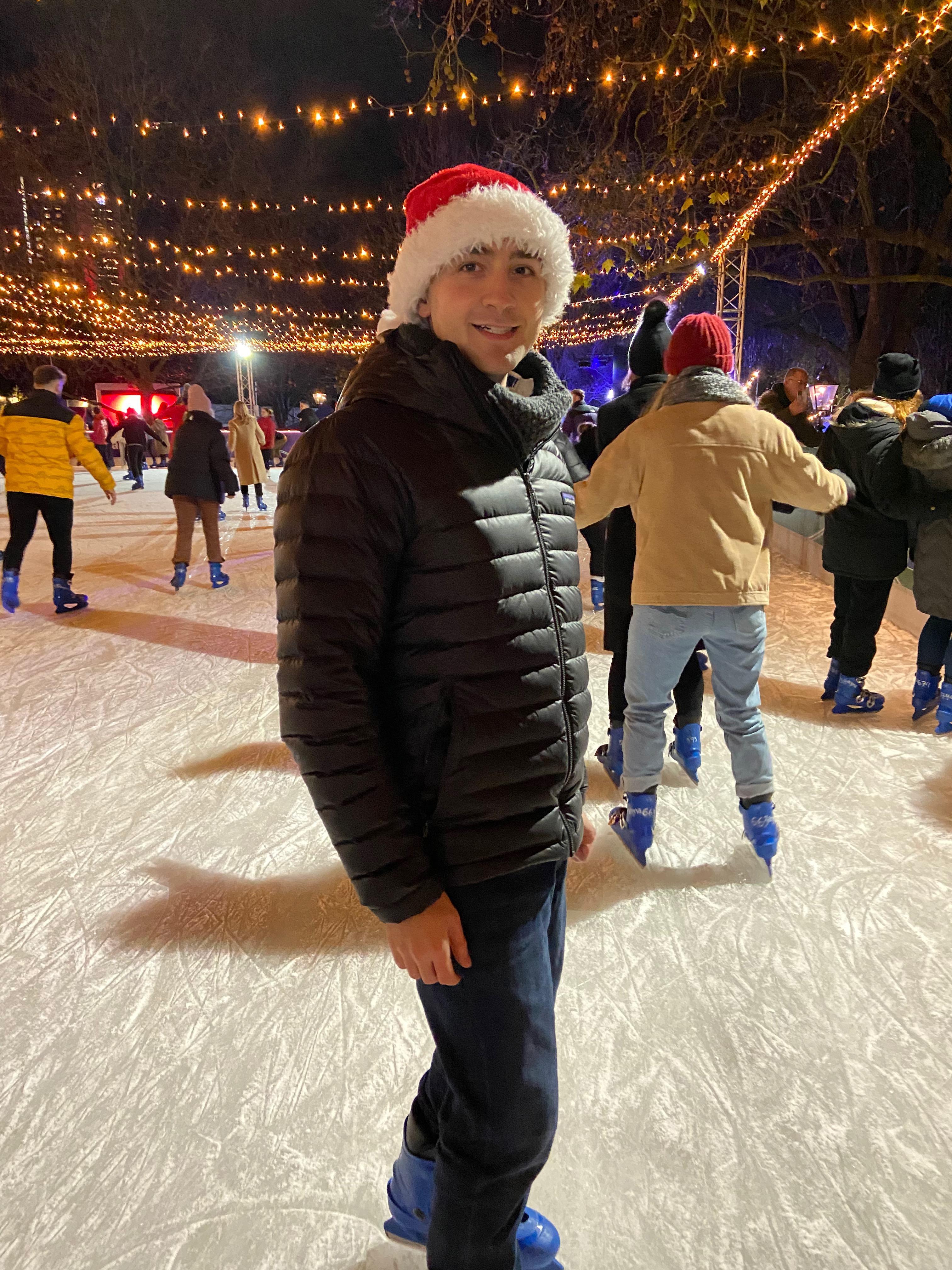 Thursday was Winter Wonderland at Hyde Park! I had been looking forward to this since I was planning on coming to London during the Christmas season. It was really cool and a lot of fun. I went with my friend who had bought tickets with me a couple of weeks ago for the entry and a ticket for ice skating. The Christmas market was really cool and I bought my mom a cashmere scarf for Christmas from one of the stands. Ice skating went pretty well, until I went airborne and came down on my backside, which really really hurt for a while and was really funny for my friend who is better at skating than me and saw me go flying. Unfortunately my friend did not want to do any of the amusement park rides, which looked really cool but were quite expensive each time you wanted to go on one. My friend left early and I stayed for another two hours. I got a Bratwurst in the Bavarian section of the park, which had a couple live bands playing under some beer tents. I walked around the rest of the park which had more and more themed winter bars and live bands playing. I really want to go back in order to do more hanging out with a group at the themed outdoor bars and some of the other stuff at the park I did not get a chance to do. The hot chocolate there was really good too.