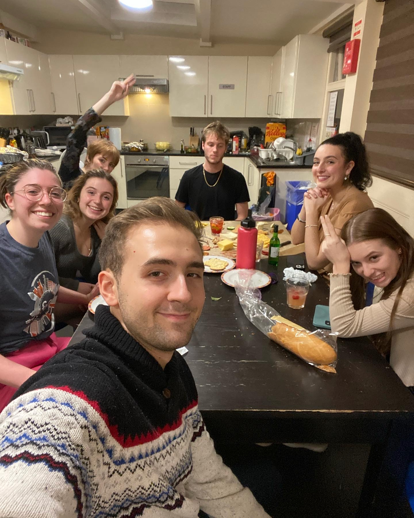 The food was fantastic! Jane made a charcuterie board and pumpkin pie, both of which were awesome, Elena got dinner rolls, Amelia made sweet potato casserole, Michelle made mashed potatoes and gravy and also helped me make an apple pie, and Bella made a salad. There were seven of us who ate dinner together out of the 9 that live in the flat.