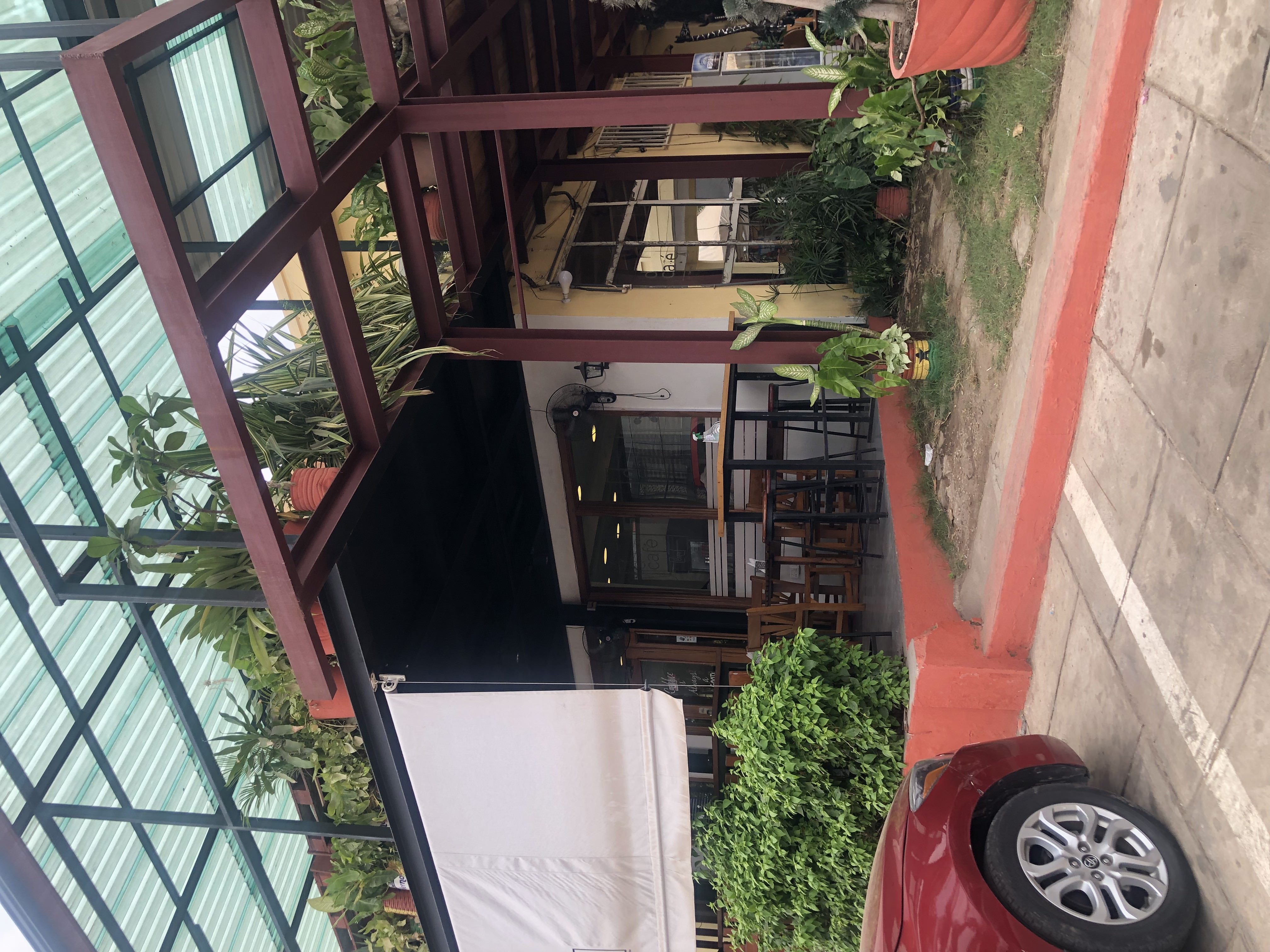 These pictures are from me at d Cafe here in Accra. One of my lecturers didnโt show up for one of our classes. So some classmates and I decided to head somewhere to pass time, hangout, catch up, and eat. We came across this cafe another international student recommended to us some time ago. I ordered a beef sandwich with some iced coffee. The food was so good that I even got chicken alfredo to go! The scenery was also beautiful. I love places that have planted and greenery themed designs. I enjoyed my time with my classmates that we usually donโt hang out outside of class.