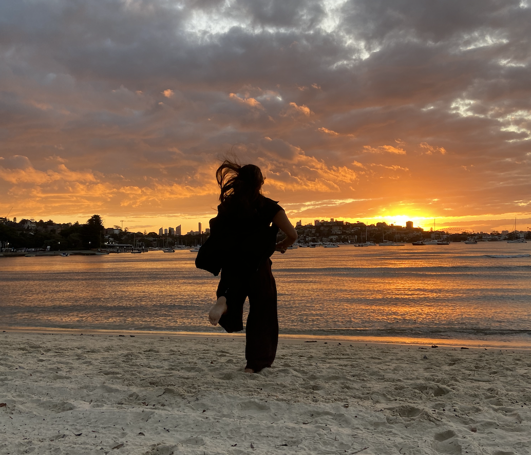 The sunset felt like it was out of a picture book. In front of us we had a view of downtown Sydney, the peak of the Opera House, the bridge, and the ocean. Falling in the background was the sun, a bountiful sun, with light streaming from all sides. As it began its descent, leaving us in this hemisphere and starting its morning rotation up north, its rays felt like they were kissing our skin, leaving us with a heated reminder of how beautiful life, and nature, is. We ran through the water, pants wet and sandy, sun reflecting on our skinโa moment of bliss, a time you want to press pause on and place in a picture frame forever.