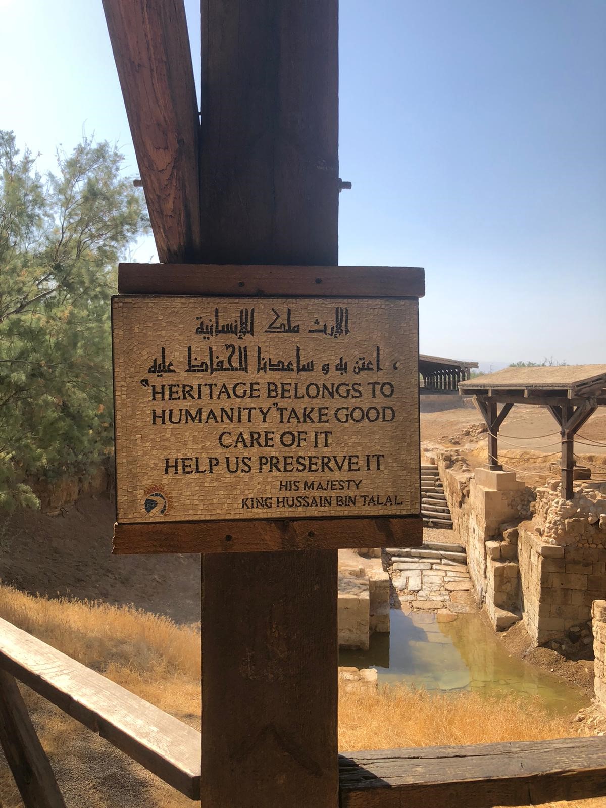 During our first week, we visited the Baptism Site in South Jordan. This site is where it is believed that John the Baptist baptized Jesus. In the picture with the plaque, you can see the baptismal site in the background. I found it fascinating to learn about this shared story present in both Christian and Islamic texts, even though baptisms are not a common cultural practice for Muslims. After seeing where Jesus was believed to have been baptized, the guide took us directly to the part of the River Jordan where Jordanians perform baptisms. I went down the river and ran my fingers through the water to get a very small sense of what it is like to be baptized in that water.