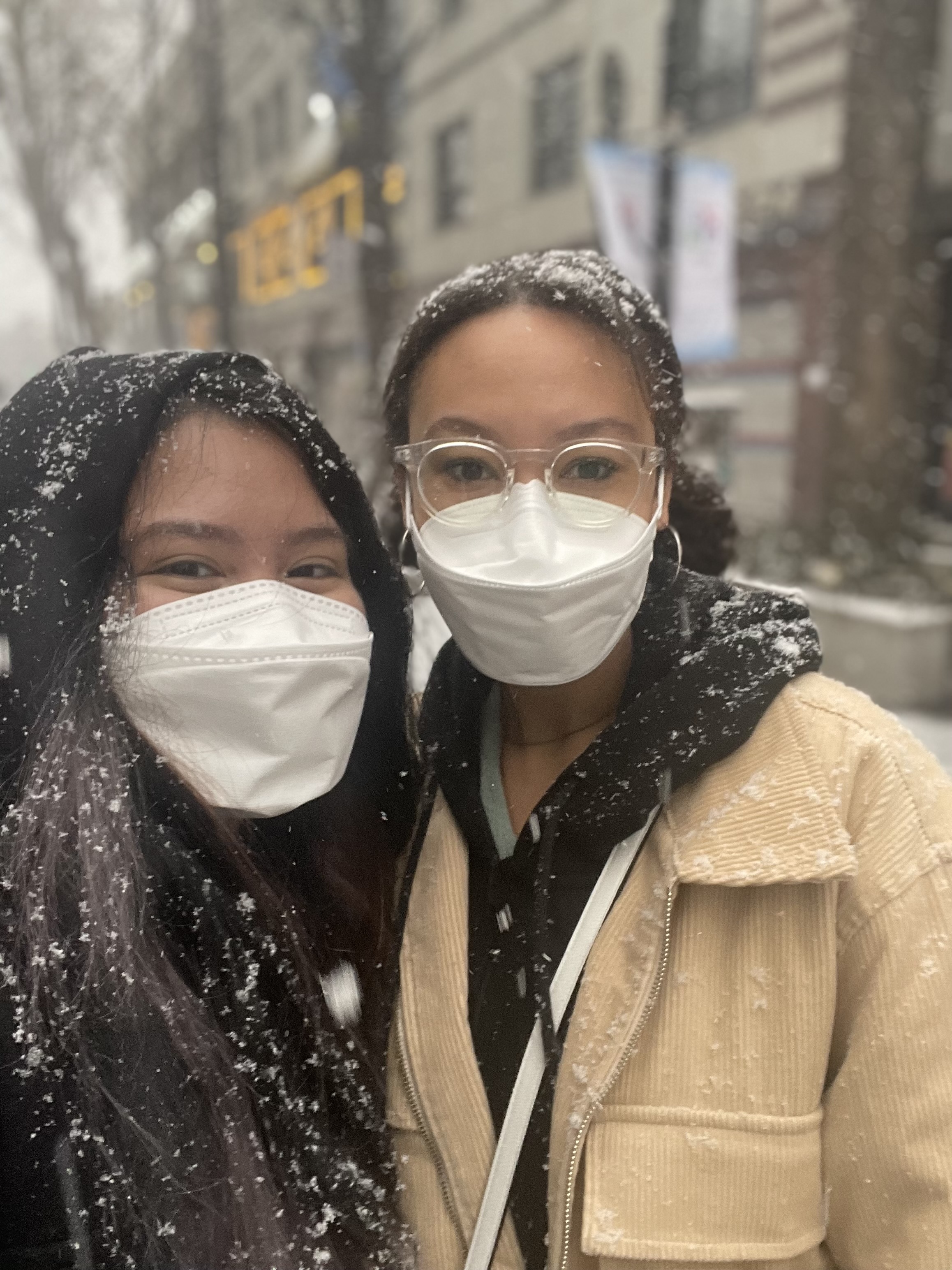 While Iโve been told stories about winters in Korea and tried to mentally prepare, experiencing it firsthand is on a whole other playing field. Nothing could have prepared me, a naive Californian, for just how brutal winters in Seoul can be. Iโve learned the art of layering up and the blessings of heating packs. However, experiencing this bitter cold is worth it because one day, when I was out exploring in Insadong, it started snowing! Not just a light sprinkle, but a heavy downfall of pretty snow. It turned everything white and created such a beautiful aesthetic with the Christmas lights and decorations. I was truly mesmerized. Later that night, my friends and I went outside at midnight when it started snowing again and had a snowball fight, and attempted to make a snowman. This snowy day was one of my favorite moments while being abroad so far!