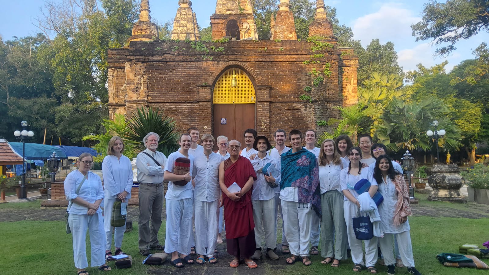 Pictured here is a group photo with our Vajrayanan teacher, a Bhutanese Khengpo. He has been kind, passionate, and generous in the knowledge he shared. I’m grateful that this program has allowed me to develop a friendship with him. I’ve also included another photo of Wat Suandok, but at night.