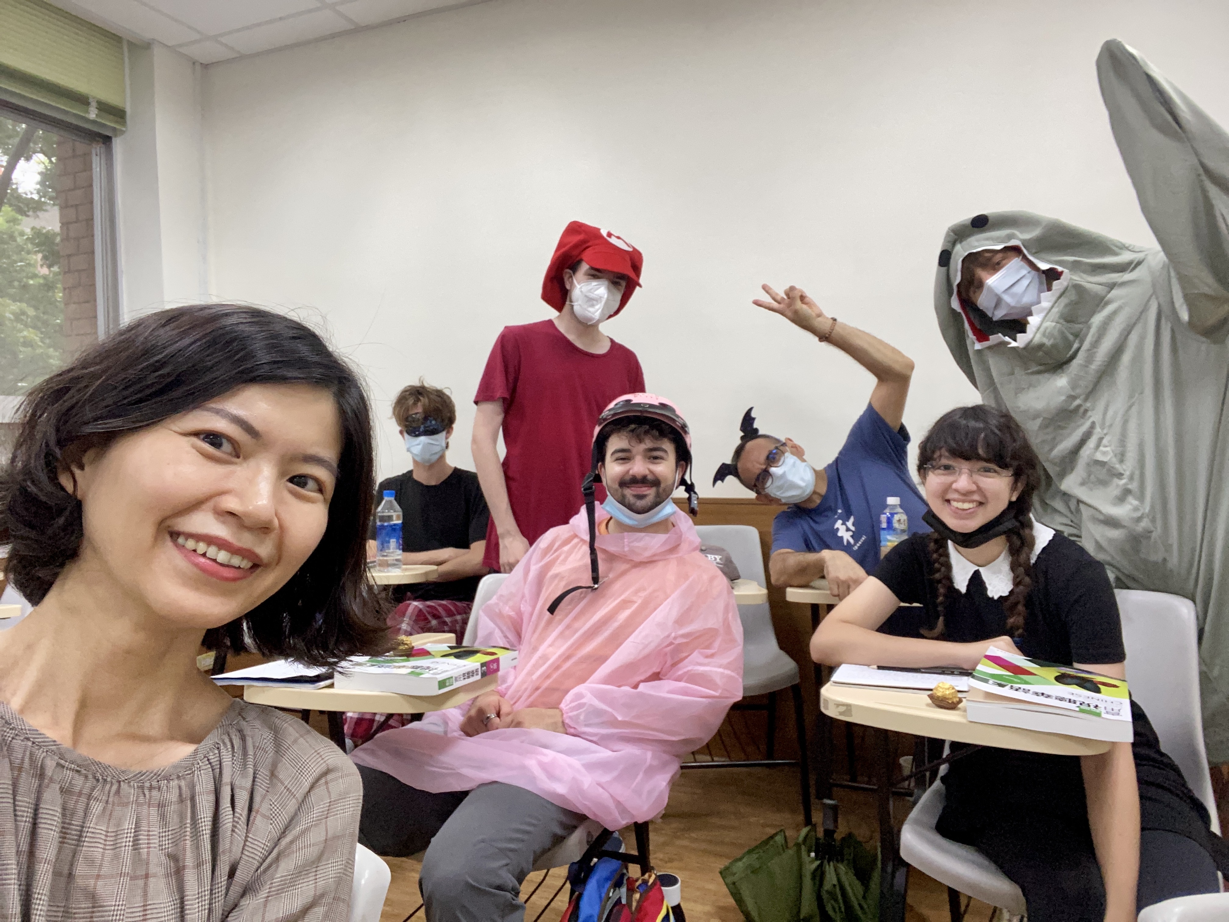 But my classes here have had their own way to celebrate the day by having us dress up! I wrote before about how I was excited to see what everyone in the other classes might do for their costumes, but I was so disappointed to see that not a lot of people dressed up at all! My class certainly didโ even a student who had not been able to come the whole week prior. Our ่ๅธ teacher is just too good at keeping us up to date, and we as her students are just too good at keeping the atmosphereๆฐๆฐ peppy at all times. It makes the days go by much faster.