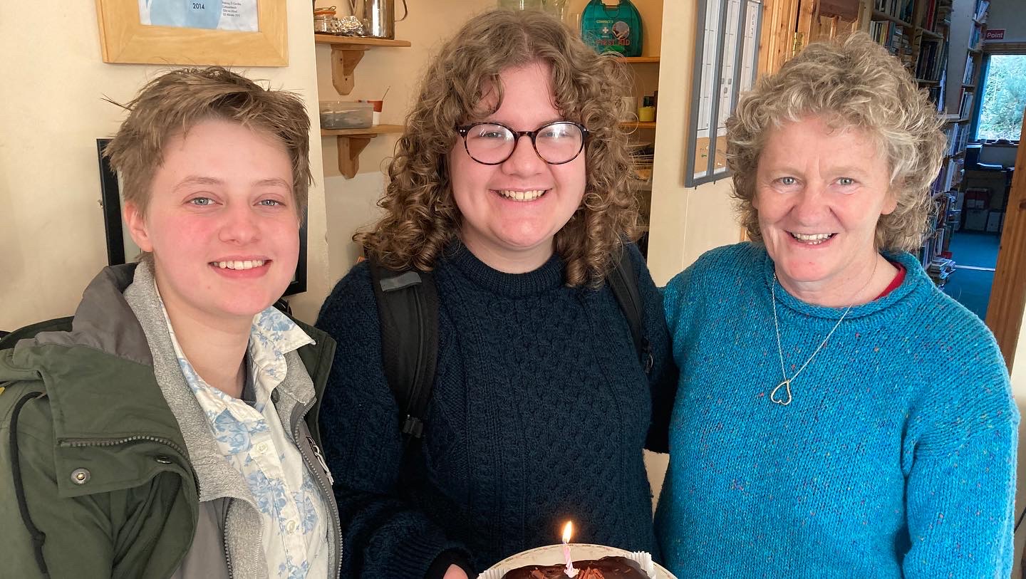 Here is a picture of me in the studio at CCR, and a picture of me, my internship partner, and my radio supervisor on my birthday! (My supervisor surprised me with a cake!)