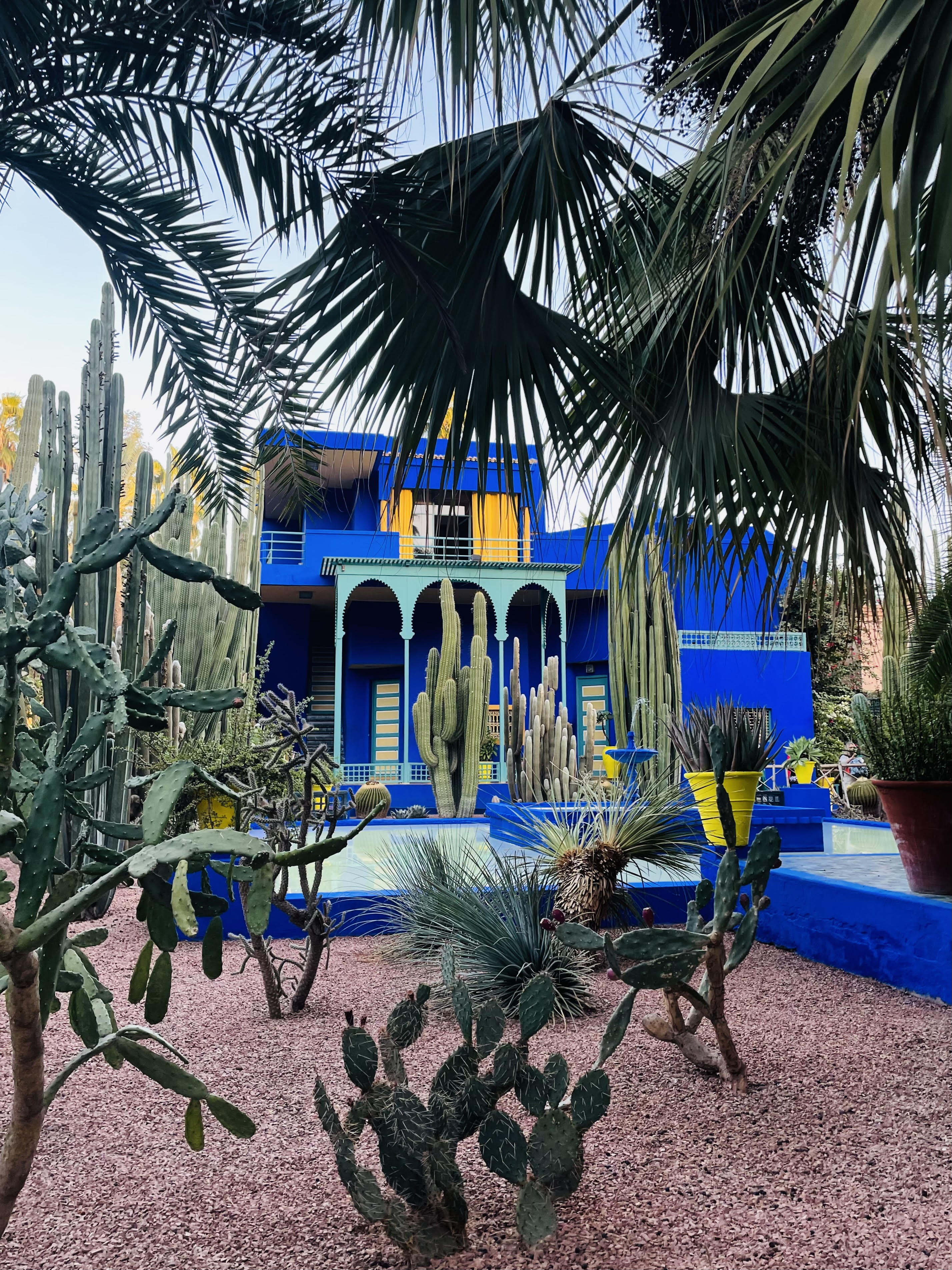On our second to last day in Marrakech, my mom and I decided to visit the Yves Saint Laurent Museum and the Majorelle Gardens. We had been told by many people that it was a must see experience during our stay in Morocco. This exhibition is a journey to the core of Yves Saint Laurent’s inspirations. Many of his most famous pieces were actually inspired by Marrakech. It includes iconic creations by the couturier, such as his pea coat, mondrian dress, safarijacket and tuxedo-inspired smoking. Fifty haute couture creations-rotated every ten months as required by preventive conservation-are presented around themes dear to Yves Saint Laurent: “Gardens,”A Dream of Africa,”Imaginary Journeys,” “Masculine-Feminine,”‘An Invitation to a Ballโ, and “Art.” They offer an original reading of the couturier’s work by displaying pieces rarely seen by the public in a thematic conversation with selected works from the collections of the Pierre Bergรฉ Museum of Berber Arts. It was a beautiful inside look at the fashion industry with a touch of Moroccan inspiration.