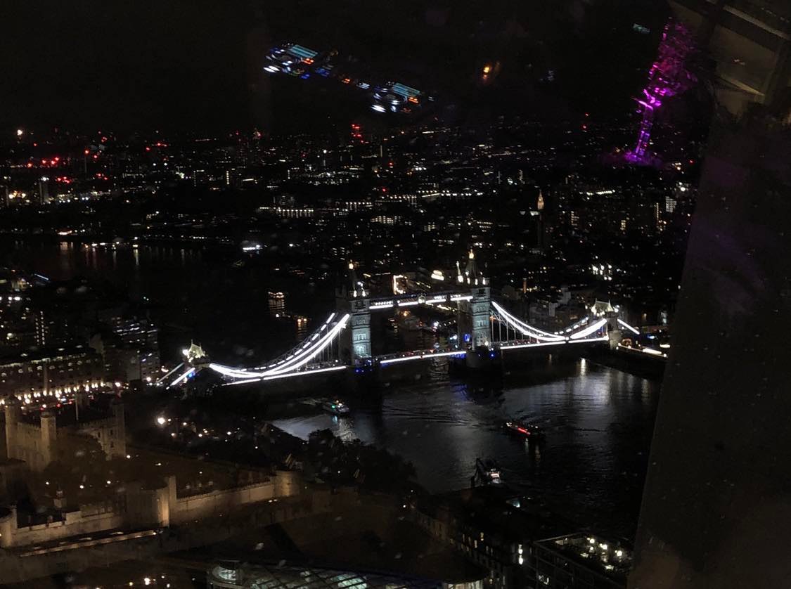 On Sunday, my friend and I visited the Sky Garden โ Londonโs highest public garden! We booked our tickets for 6:30pm, so we could admire the night lights of central London and see the fireworks in the distance (that day it was Guy Fawkes/Bonfire Night โ an annual commemoration observed in Great Britain involving bonfires and firework displays). The view was breathtaking, as we could see all the major attractions of the London skyline, including the London Eye, Tower Bridge, and the Shard! I highly recommend this observation deck to anyone visiting London, not only because of the amazing views, but also because it was 100% free!
