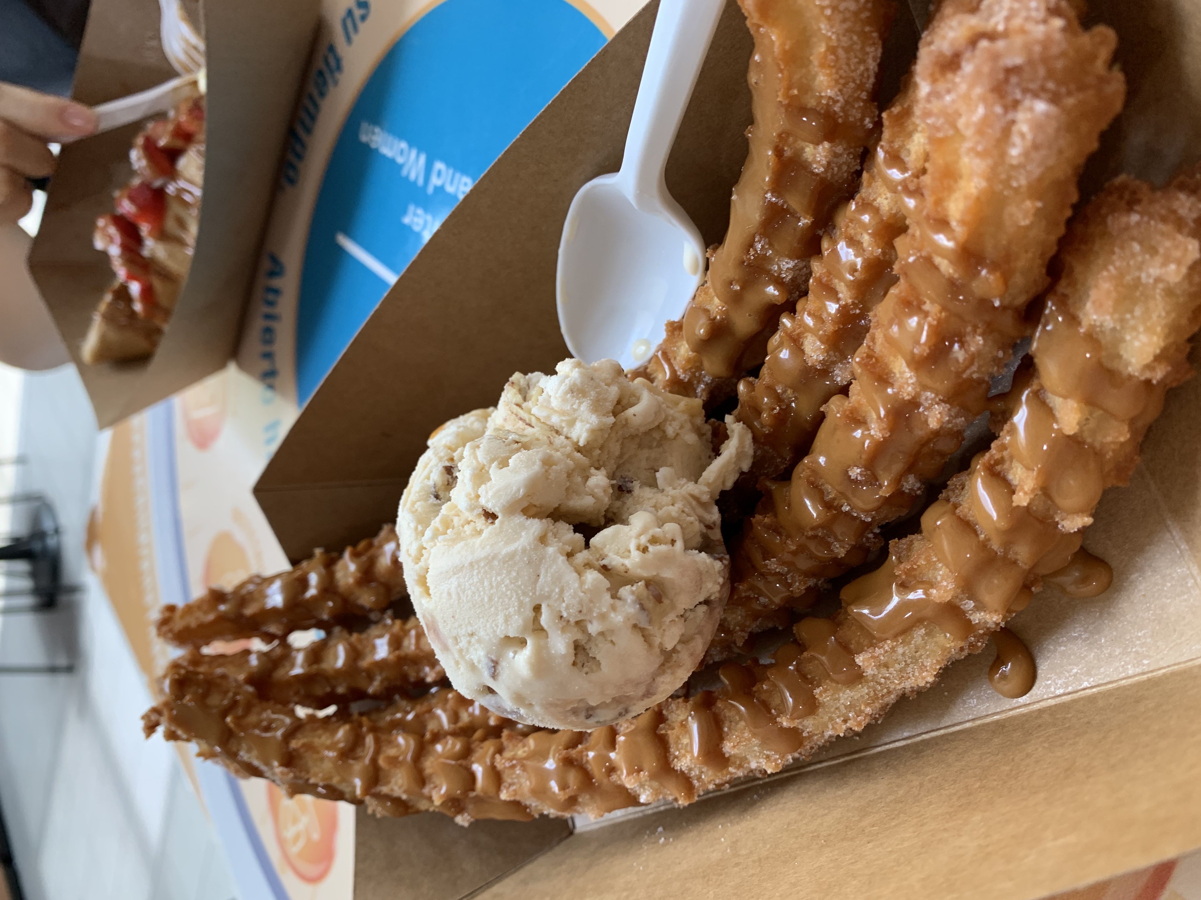 For the cultural activity this week, my friend and I went to the Plaza De Las Americas. The Hispanic mall featured small businesses selling clothes, household items, and food. I very much enjoyed the food court. My friend and I had churros with a scoop of walnut ice cream and caramel strawberry crรชpes at a stand. Only one lady was working there, and I was surprised to see that she made the food from scratch. I loved that I was able to watch her make it from beginning to end and was able to taste the fresh strawberries. The dessert dishes were just right on the sweetness and made the perfect late breakfast. After the meal, we went around the entire mall and had to stop ourselves several times from buying everything we saw. The items we were interested in were very affordable, but we had promised ourselves to put a limit on our hoarding tendencies.